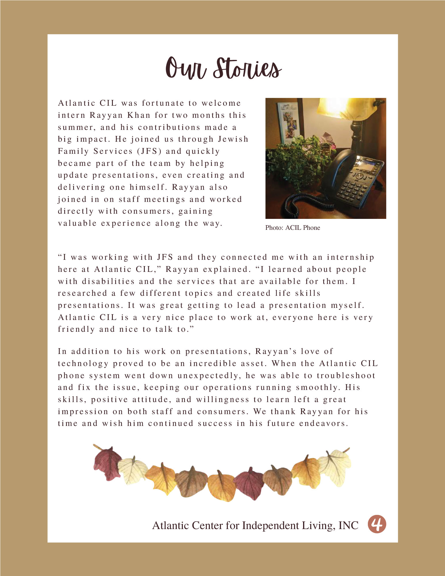 conviction and I stand on my rights as an advocate. My disability is schizoaffective Bipolar type 2 it's a dual diagnosis, I also suffer from some medical issues which include diabetes, and hyperthyroidism. I came to know about ACIL because of their sister agency Mental Health Association of New Jersey. I went to one of Jenny Walker's groups initially, and then I needed some assistance with mock interviews. Ana Then helped me out a lot in this area, practicing mock interviews is something we all need because after all practice makes perfect. Being a consumer of Atlantic CIL has helped me build skills and make modifications in my life to be more confident. I can proudly say I now have two volunteer positions; one is at the Mental Health Association of New Jersey and I also volunteer at Inspira Hospital. Atlantic CIL allowed me to see my value and worth through an affirmation I am uniquely and wonderfully made.